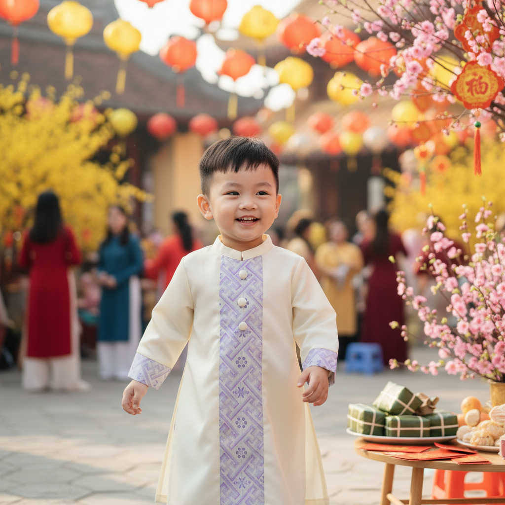 Áo dài bé trai Litibaby