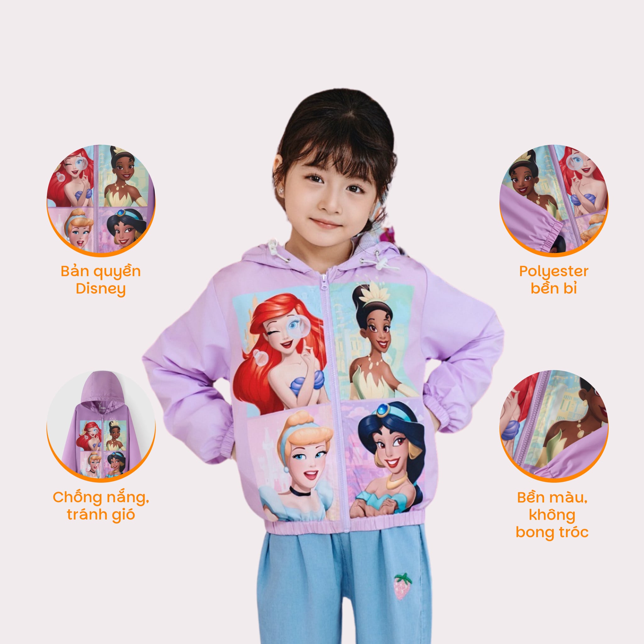 Review Áo khoác gió công chúa Disney bé gái Rabity
