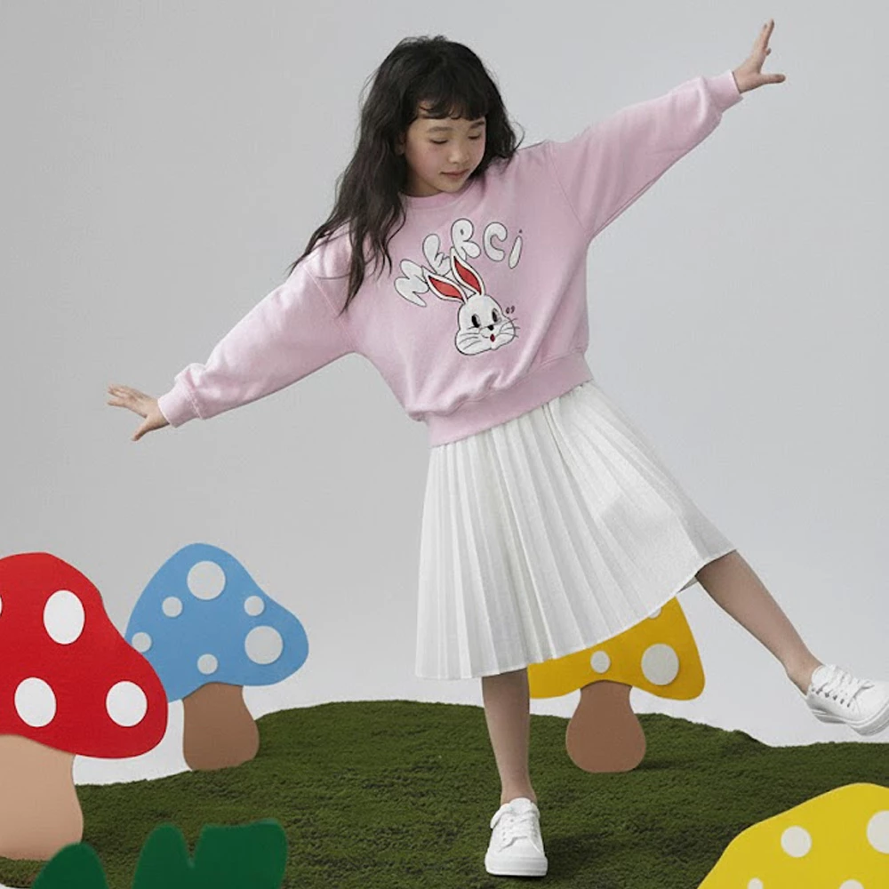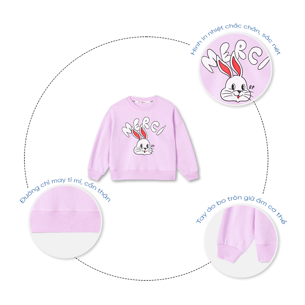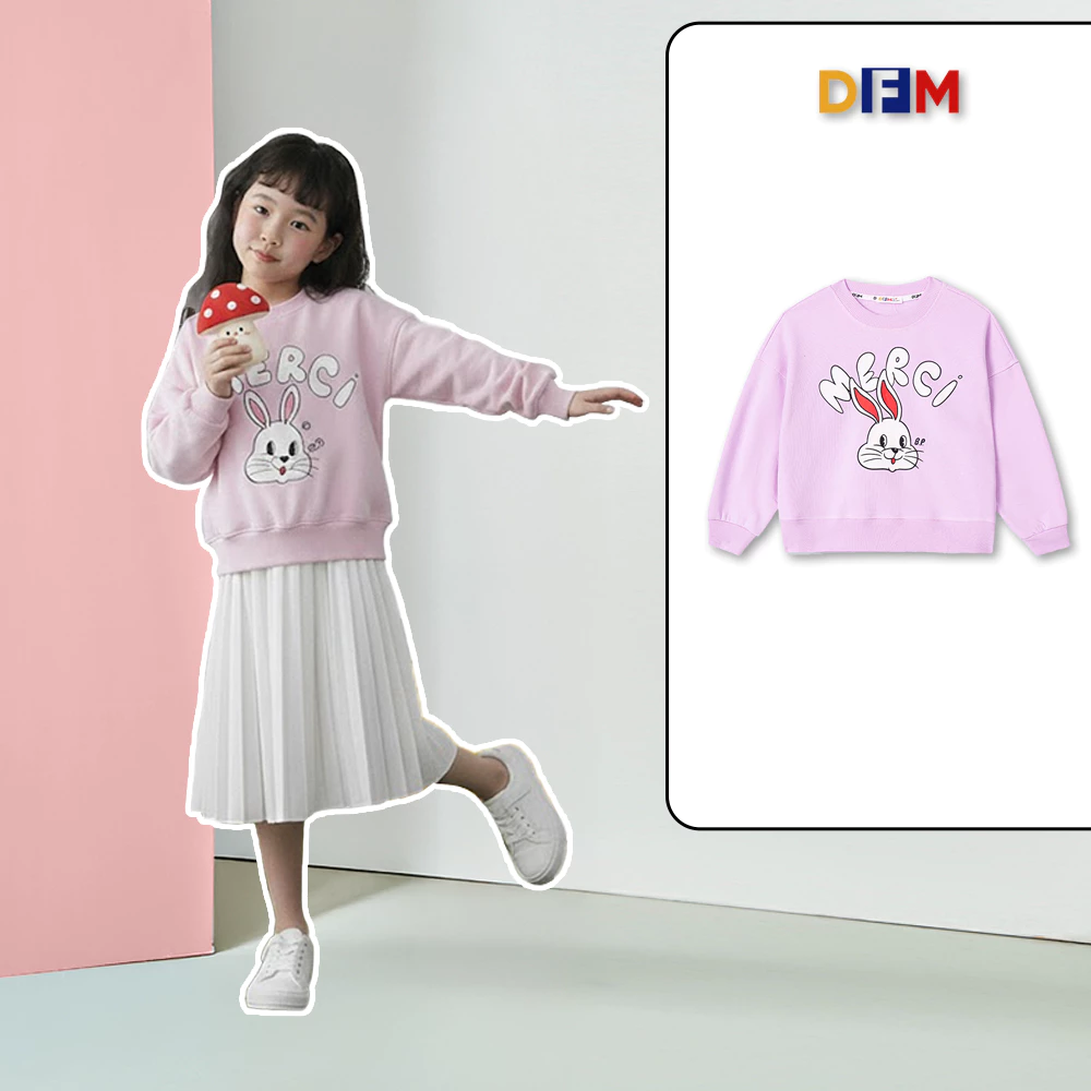 Review Áo Nỉ Dài Tay cổ cổ tròn thỏ Merci bé gái DFM