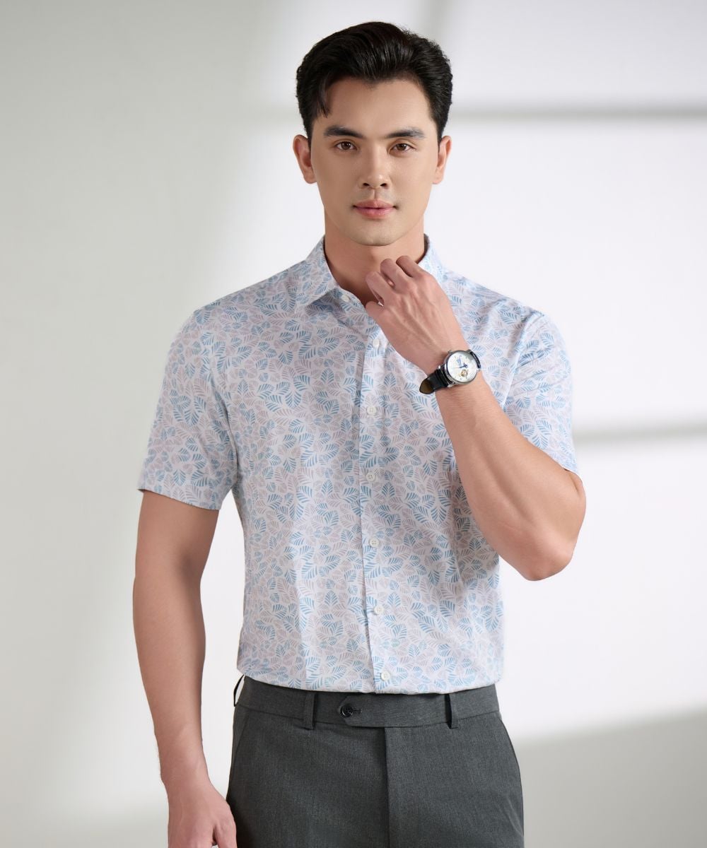 Áo Sơ Mi Cộc Tay Phối Hoạ Tiết Cao Cấp, Chống Nhăn BILUXURY