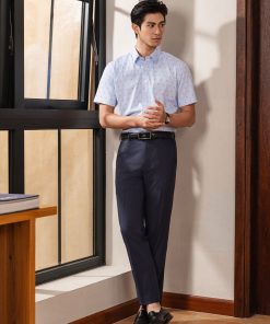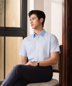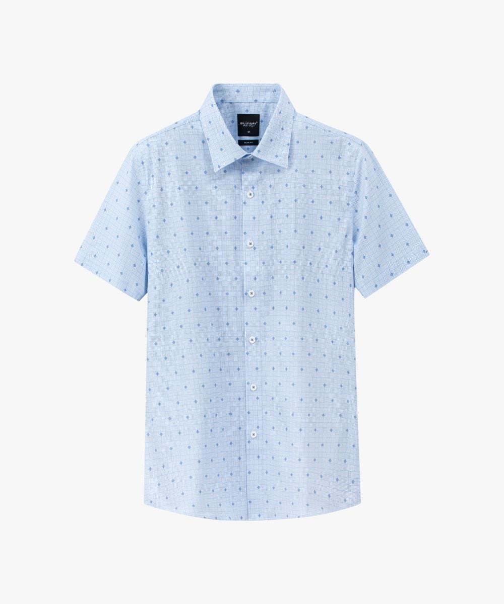 Áo Sơ Mi Cộc Tay Xanh, Hoạ Tiết, Kháng Khuẩn BILUXURY