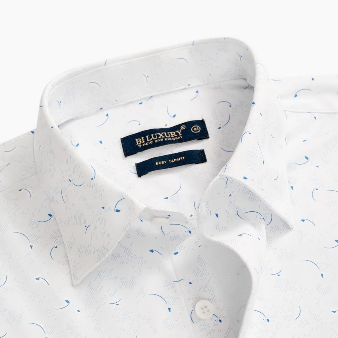 Áo Sơ Mi Dài Tay Trắng Thiết Kế Hoạ Tiết Cao Cấp BILUXURY
