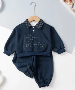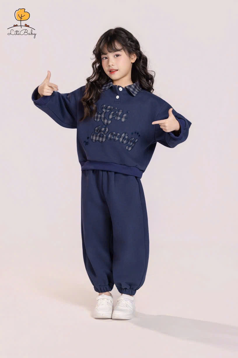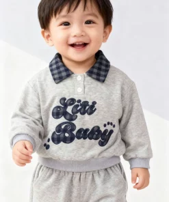 Bộ quần áo nỉ cổ bẻ kẻ caro trẻ em Litibaby