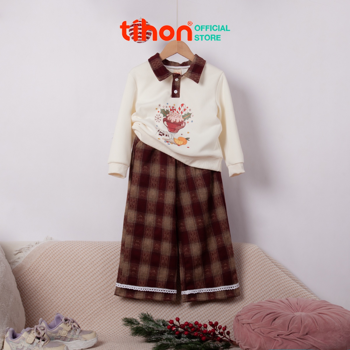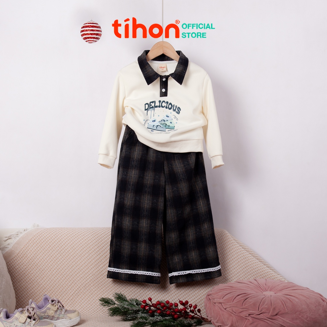 Set bộ bé gái quần kẻ ca rô